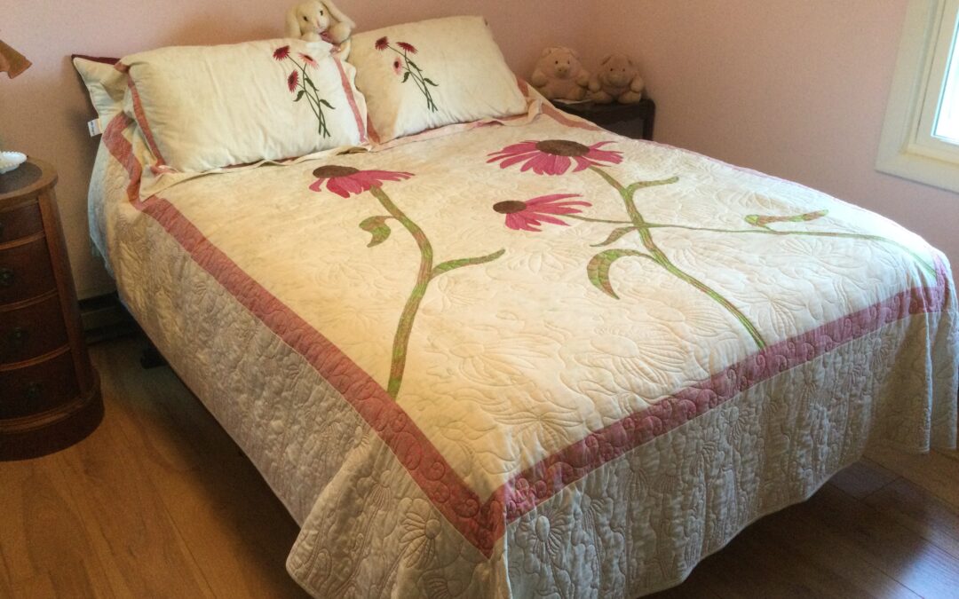 If you want a quality, custom made quilt, call Karen. She made me a beautiful queen size “cone flower” quilt for my guest bedroom. I told her the pink cones were a favorite in my wild flower garden, and she did the rest. A pleasure to work with. November 2021